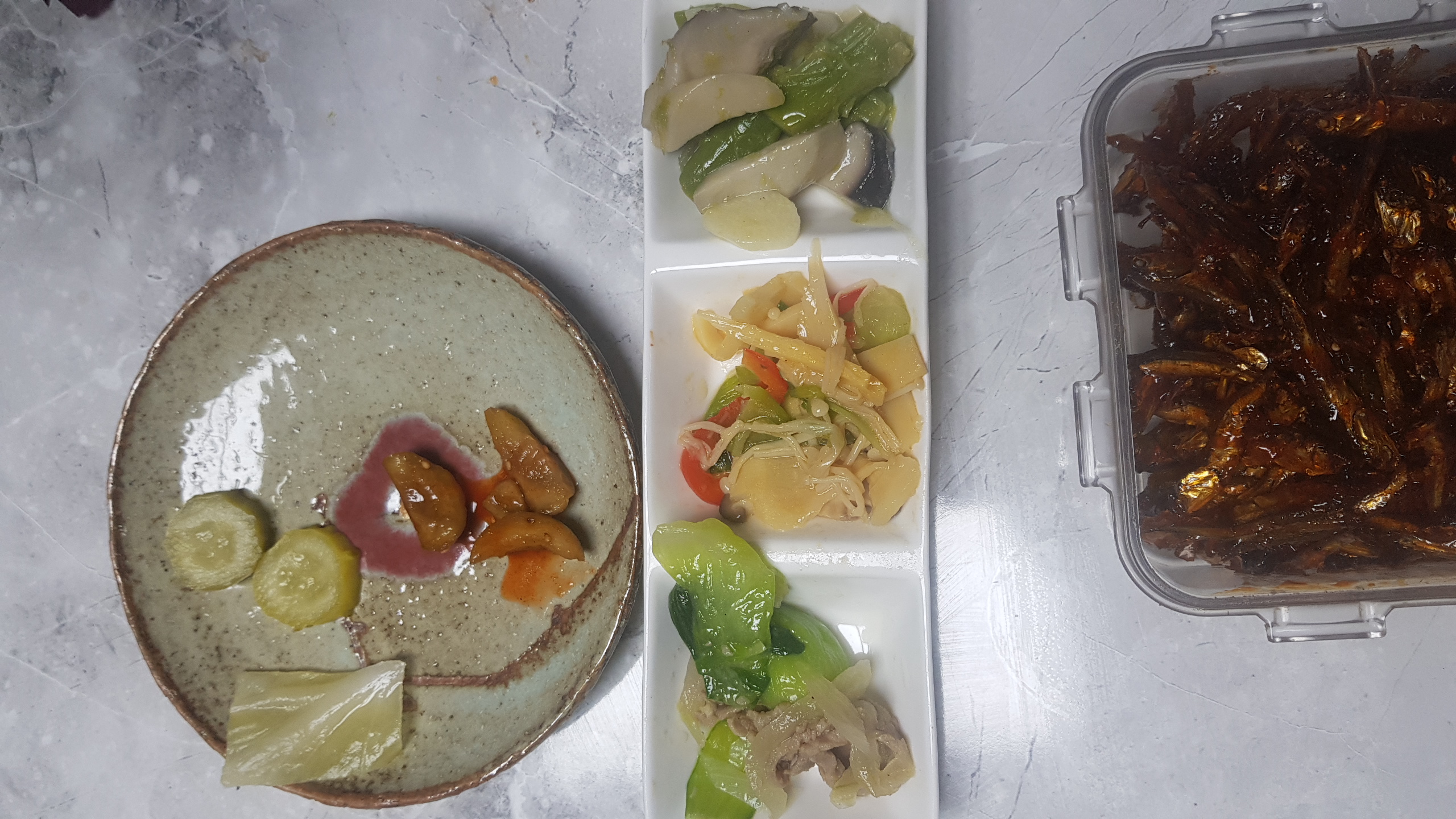 이번 반찬 중 네 가지. 만족합니다. 맛있고 반찬 스트레스가 없어졌어요.