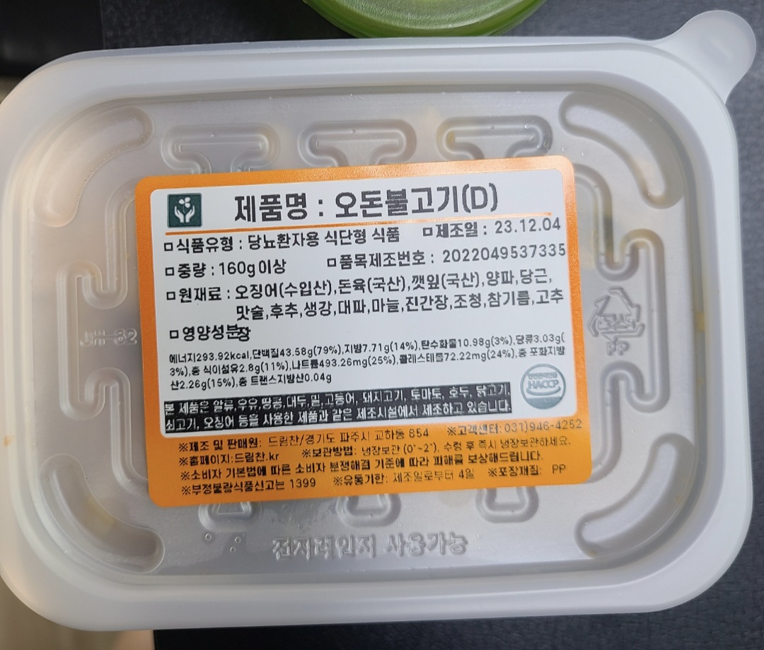 드림찬에서 당뇨식사를 주문했습니다